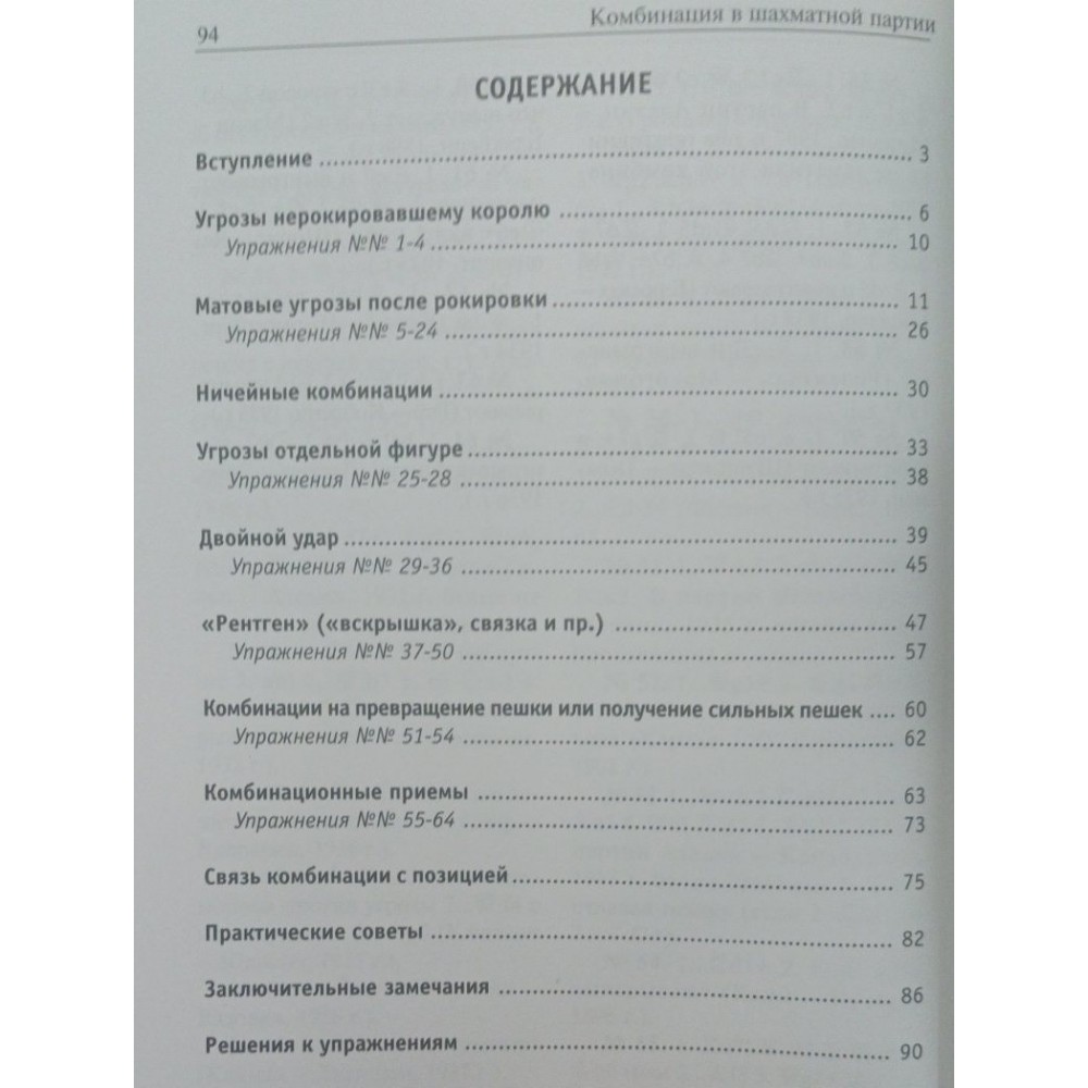 Книга відомого радянського майстра та теоретика Веніаміна Марковича Блюменфельда присвячена найважливішій складовій шахової партії – комбінаційному мистецтву. Автор розповідає про те, як знаходити та розпізнавати приховані тактичні ресурси позиції, наводить позиції для самостійного рішення, спрямовані на розвиток комбінаційного зору. Практичні поради автора, що зберегли актуальність до наших днів, допоможуть читачеві краще зрозуміти, коли під час партії слід шукати тактичний удар, а коли має сенс обмежитися солідним позиційним продовженням, заощадивши час на обмірковування ходів. Для широкого кола любителів шахів.