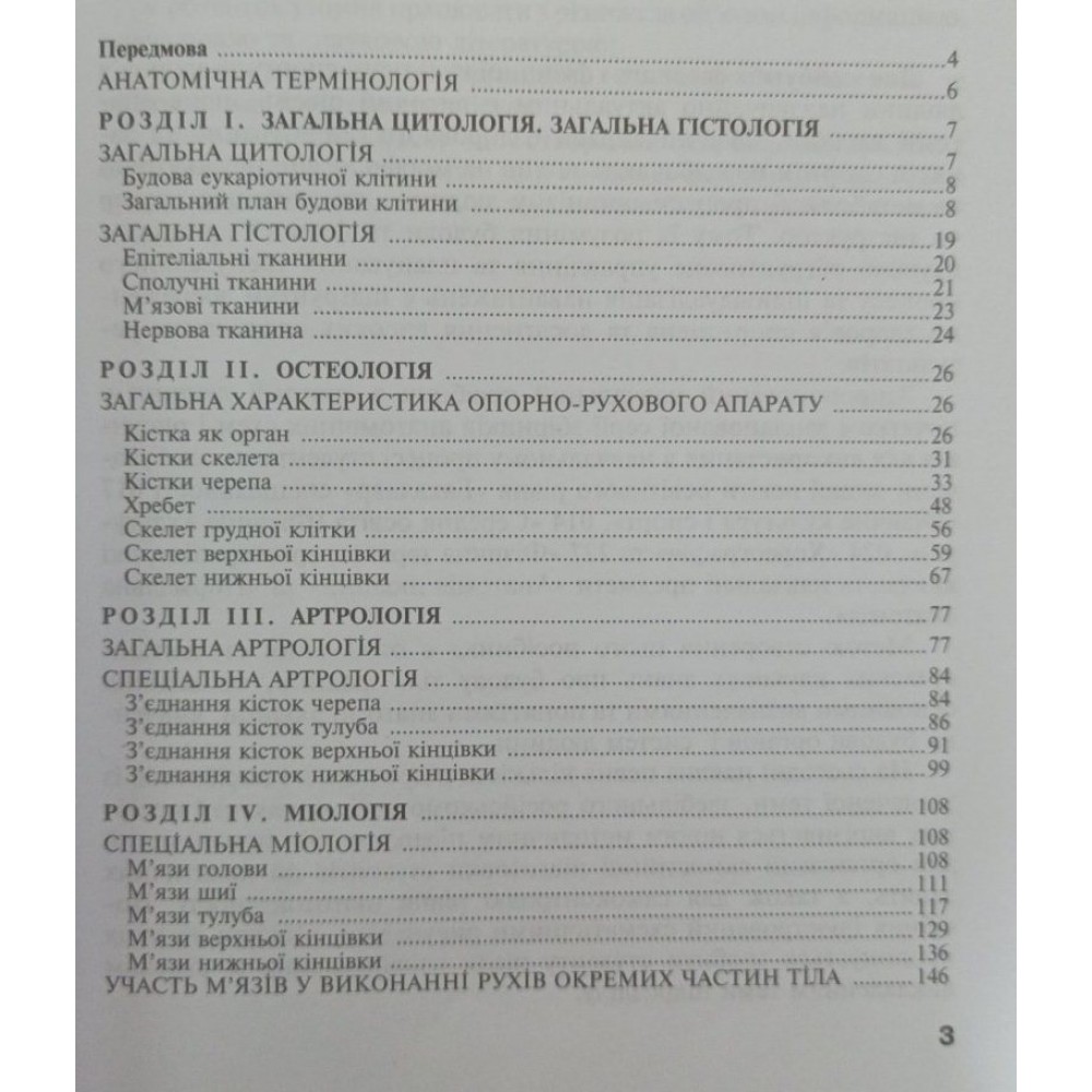 Навчальний посібник створено відповідно до навчальної програми з вивчення анатомії людини у вищих навчальних закладах спортивного профілю. Посібник містить сучасні наукові знання із загальної цитології та гістології, остеології, артрології та міології. Він призначений для організації самостійної підготовки студентів до практичних зайняття, має велику кількість схематичних малюнків, які допоможуть у вивченні нового матеріалу та у проведенні самоконтролю. Для студентів та викладачів вищих навчальних закладів ІІІ—ІV рівнів акредитації спортивного профілю.