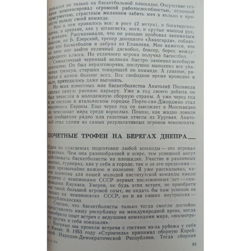 Заслужений тренер СРСР, який довгі роки працював з однією з провідних баскетбольних команд Радянського Союзу "Будівельник" (Київ), розповідає про свій життєвий шлях, радість успіху та гіркоту поразок. Видання призначене для широкого кола читачів.