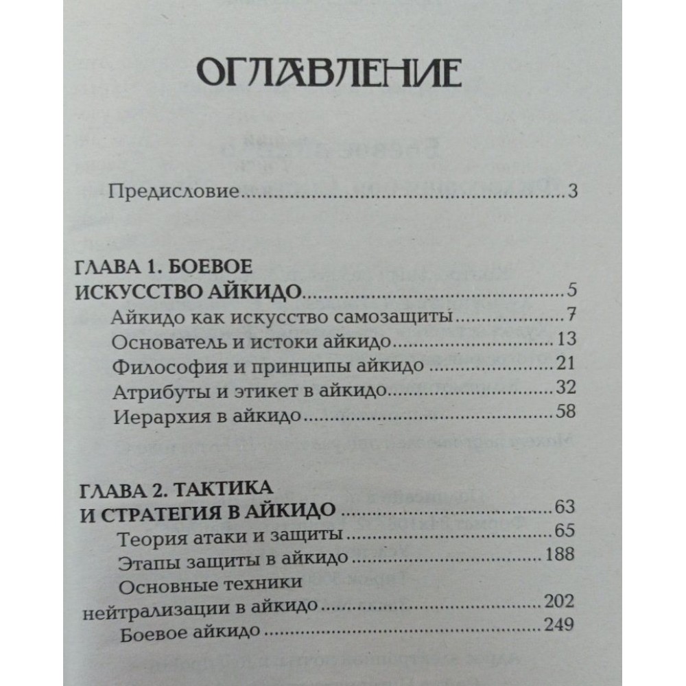 У цій книзі розповідається не лише про прийоми айкідо, методи та тактику ведення бою, але розкривається філософія цього самурайського бойового мистецтва. Показано головну відмінність айкідо з інших видів східних єдиноборств – його яскраво виражений оборонний характер. Також книга знайомить читачів із найзнаменитішими майстрами айкідо, їх вкладом у розвиток такої глибоко філософської системи самооборони.