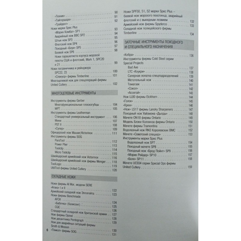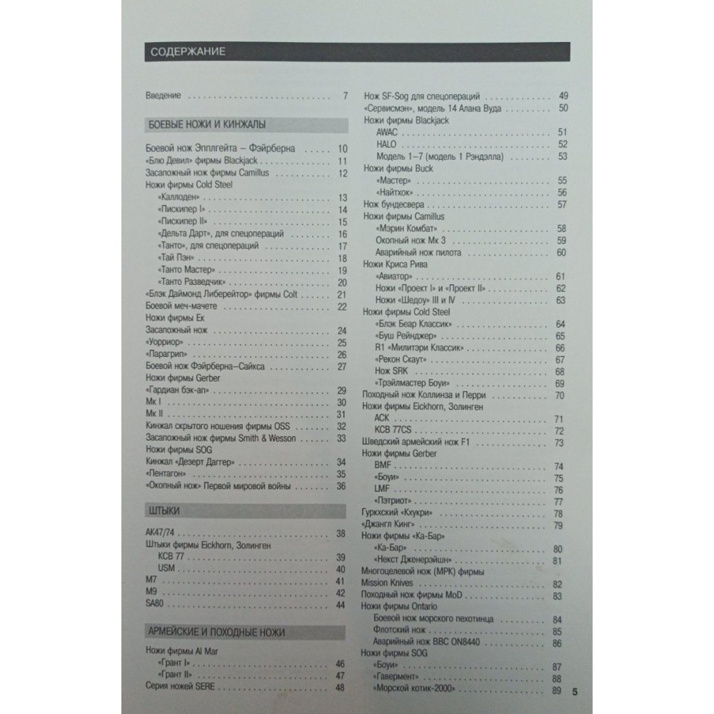 Ця книга є оглядом основних типів бойових, армійських і хибних ножів, мачете, багнетів та іншого лезового інструменту, що виготовляються та застосовуються у всіх країнах світу. Тут міститься ілюстрована інформація про понад 150 моделей, включаючи як широко відомі, так і таку екзотику, як бойові сокири та ассегаї.