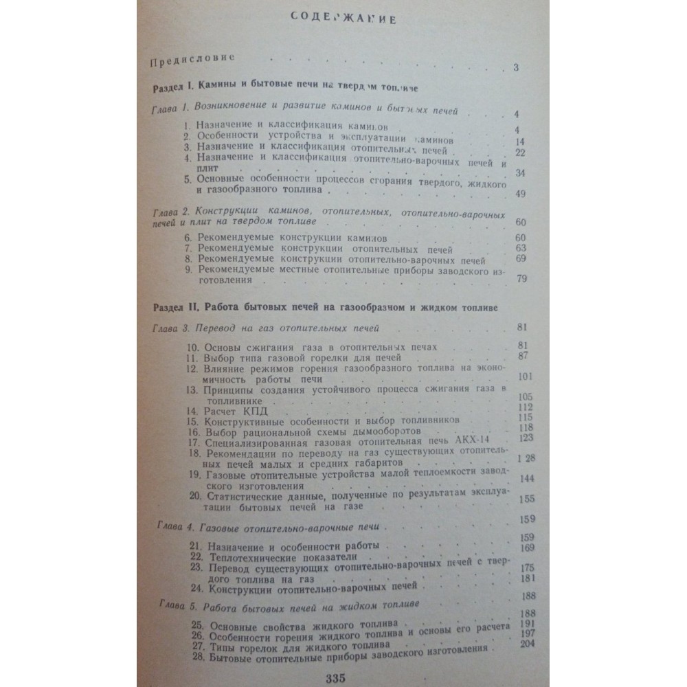 У книзі наведено відомості про влаштування та конструкцію побутових печей, камінів та місцевих водонагрівальних установок, що застосовуються в малоповерховому домобудуванні в різних кліматичних поясах СРСР. Передбачено процеси горіння палива в печах та фактори, що впливають на економічність їхньої роботи. Висвітлено питання безпеки та раціональної роботи газових опалювальних та опалювальних печей. Дано інформацію про конструкцію побутових печей для індивідуальних лазень.