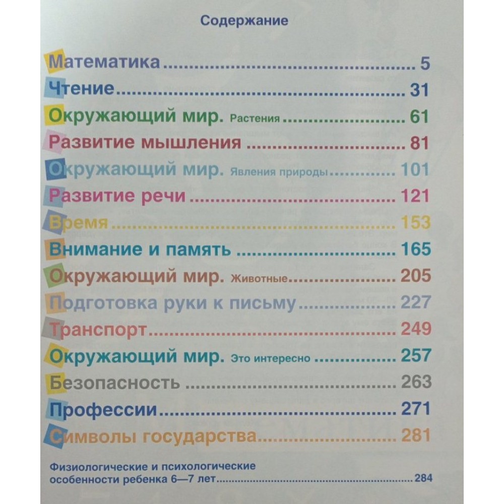 Букіністичне видання. Книга є повним курсом підготовки до школи. У ній зібрано теоретичний матеріал з основних тем, які має знати дошкільник, і навіть різноманітні ігрові вправи, створені задля розвиток інтелектуальних здібностей дитини.
