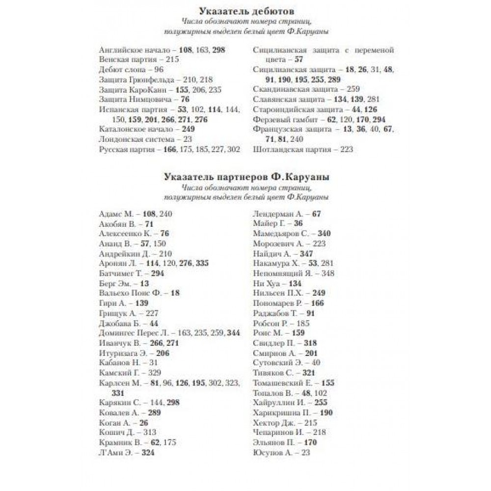 Фабіано Каруана – один із найсильніших шахістів сучасності, учасник матчу за звання чемпіона світу. У своїй книзі гросмейстер Сайрус Лакдавала вивчає у деталях шаховий стиль Каруани на прикладі його найкращих, включаючи 2020 рік, партій. Формат книги "Хід за ходом" - ідеальна платформа для вивчення шахів. У «опорних» точках кожної партії читачеві пропонуються тестові питання, що допомагає як практичному вивченню ключових прийомів шахової гри, так і надійному засвоєнню знань, що знаходять. Запитання (і відповіді автора) націлені на те, щоб читач був активно залучений до процесу навчання та одночасно міг відстежувати зростання своєї шахової сили.