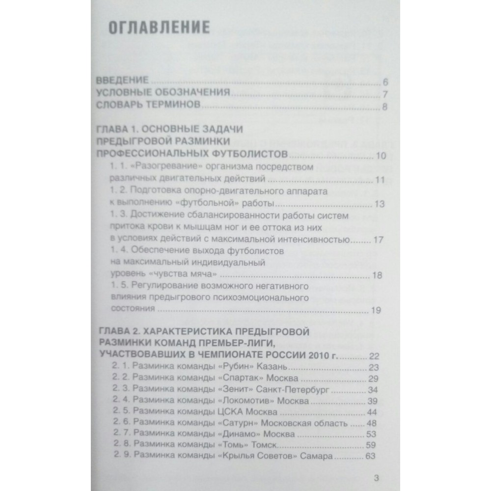 Розглядаються основні завдання передігрової розминки професійних футболістів. Наводиться характеристика передігрової розминки польових гравців команд Прем'єр-Ліги, які брали участь у Чемпіонаті Росії 2010 р., з описом застосовуваних вправ та зазначенням дозування їх виконання. Пропонується низка заходів для кращої безпосередньої підготовки професійних футболістів до гри. Матеріали призначаються для тренерів, які працюють як у професійних футбольних командах, так і у юнацькому футболі.