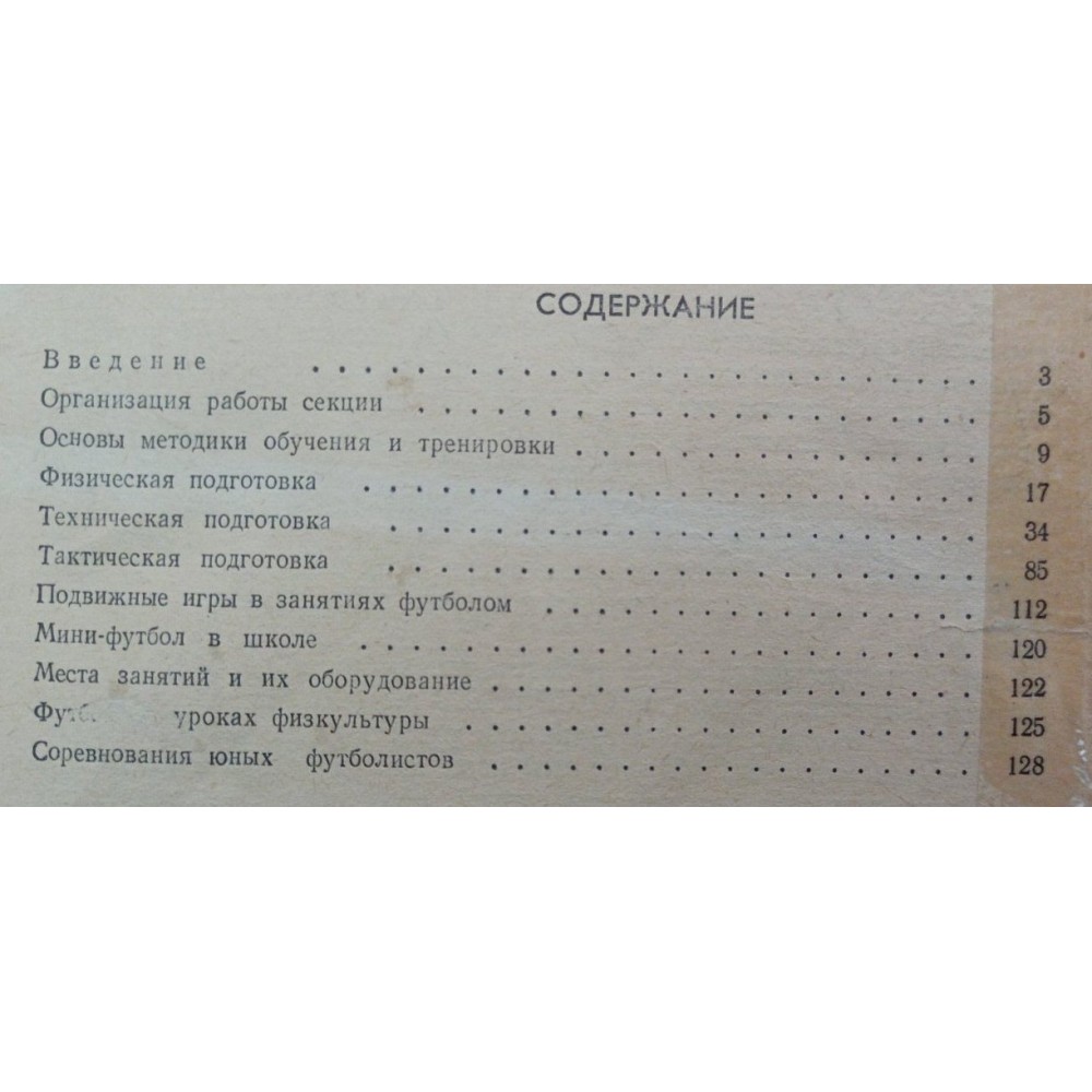 Букіністичне видання. У книзі відображено специфіку занять футболом у школі, надано послідовність навчання юних футболістів техніці та тактиці гри. Цікавий та різноманітний практичний матеріал. Книга буде корисною викладачам фізкультури загальноосвітніх шкіл, а також тренерам-громадськикам та працівникам спортивних шкіл.