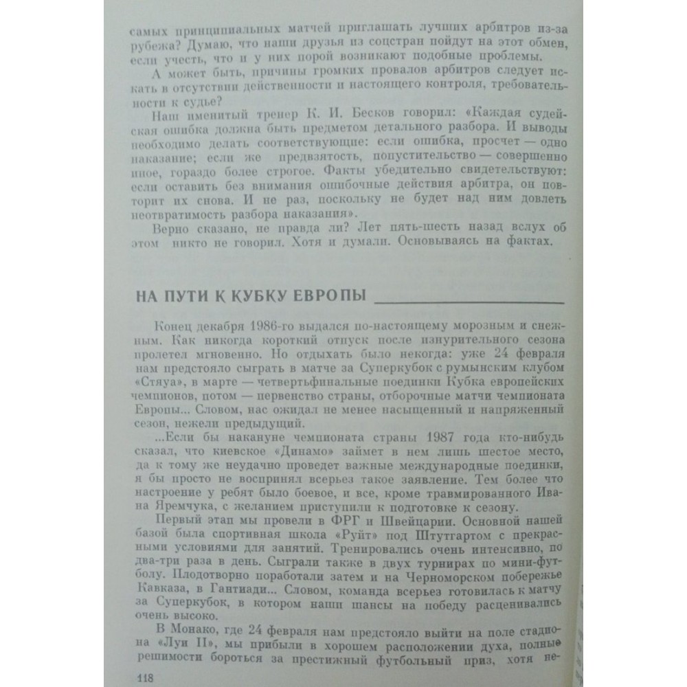 Заслужений майстер спорту, капітан команди «Динамо» (Київ) та збірної Радянського Союзу з футболу розповідає про свій шлях у великий спорт, участь у чемпіонатах світу в Іспанії та Мексиці, про нові тенденції розвитку цього виду спорту, своїх друзів та суперників . Літературний запис А. Семененка
