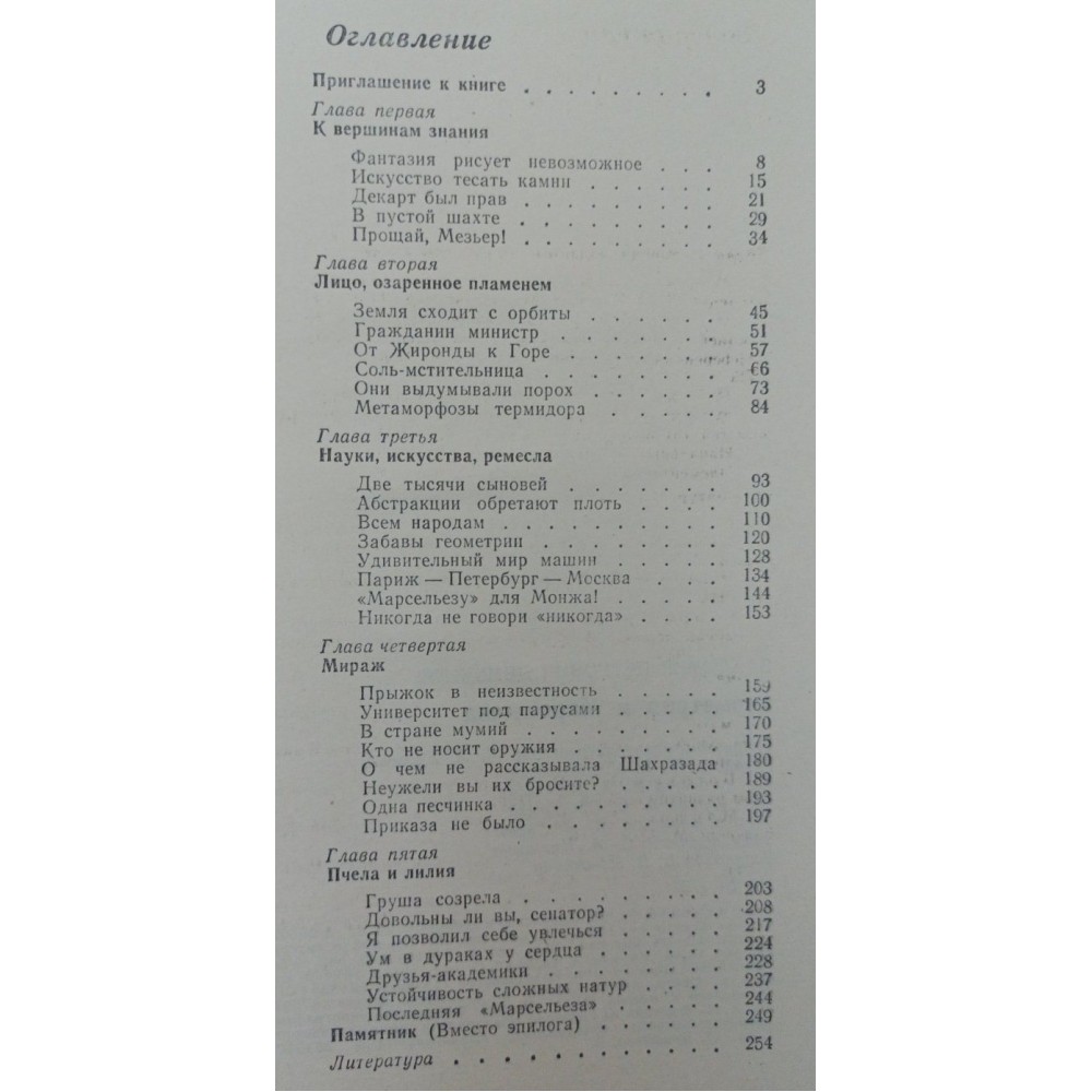 Марат порівнював його з слухняним тягловим конем; жирондистка Ролан - з каменотесом та ведмедем; для роялістів він був нелюдом, убивцею короля; Наполеон вважав його простодушним, безкорисливим ученим, людиною, нездатною вбити навіть курку. Всі ці оцінки відносяться до Гаспара Монжа — одного з класиків природознавства, математика, механіка, хіміка, металург, машинознавець, творець накреслювальної геометрії. І активному діячеві Великої) французької революції 1789-1794 рр.., Чим і пояснюються настільки суперечливі оцінки його особистості. Книга розповідає про його життя та творчість і призначена для широкого кола читачів.