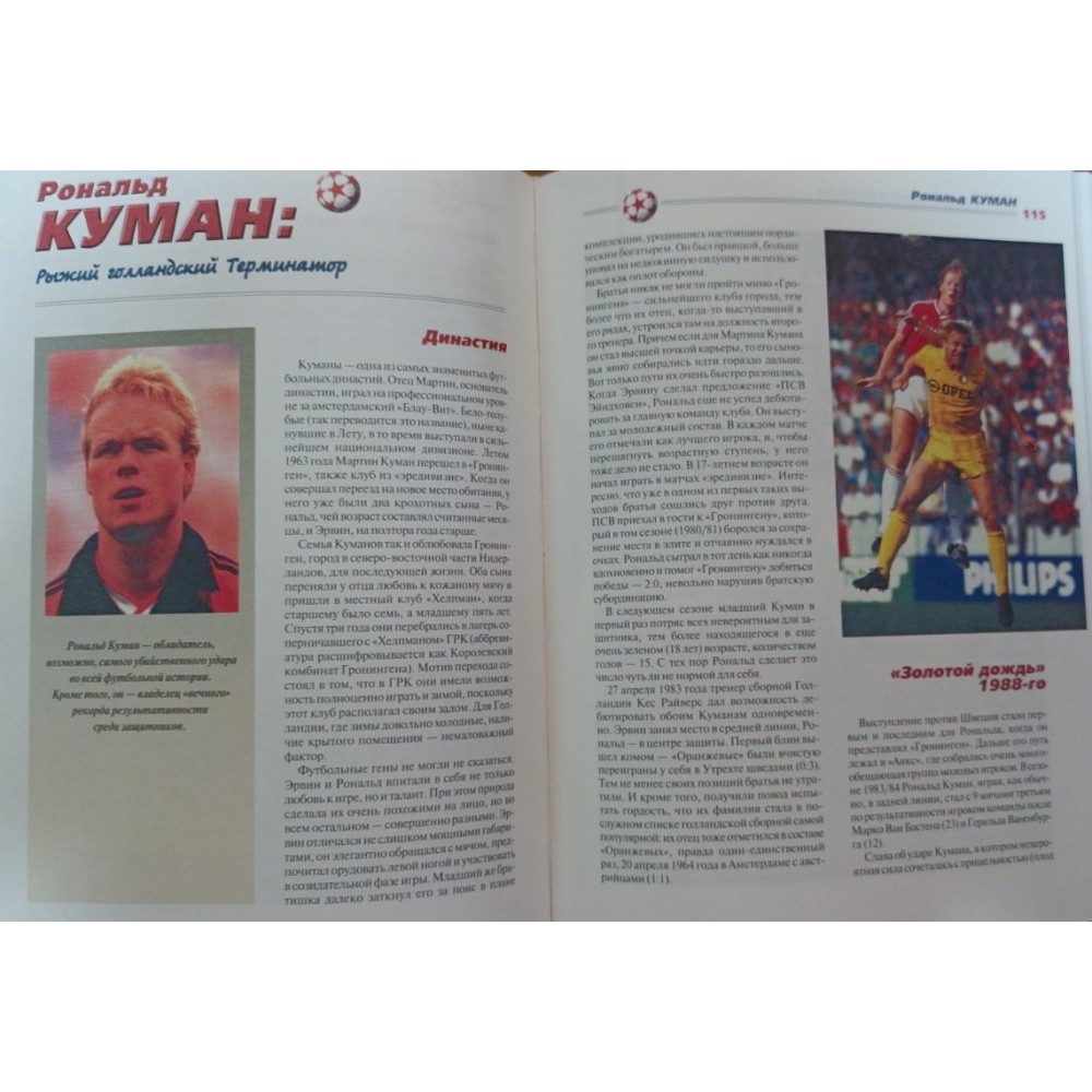 Книга відомого спортивного журналіста, історика та статистика футболу І.Гольдеса, що видається трьома окремими випусками, містить захоплюючі нариси про спортивні досягнення і особисте життя ста найяскравіших зірок шкіряного м'яча XX століття, серед яких такі легендарні імена, як Пеле, Марадона, Баджо, Бест, Гулліт, Ван Бастен, Блохін, Яшин, Гаррінча, Леонідас, Маццола, Пушкаш, Боббі Мур та інші. До уваги читачів представлені невигадані хроніки про тих, хто власною кров'ю і потім, титанічною працею та цілеспрямованістю досяг видатних успіхів у спорті; про тих, чия поява на футбольному полі приводила в справжнє божевілля та невимовний екстаз багатотисячні стадіони всіх континентів; про тих, хто своєю фантастичною грою змушував уболівальників тріумфувати і страждати, плакати і сміятися, любити і ненавидіти: про тих, хто подарував світові радість спілкування з чарівним мистецтвом Великої Ігри! Книга містить великий довідковий матеріал, ілюстрована рідкісними фотографіями та представляє величезний інтерес для багатомільйонних шанувальників футболу.