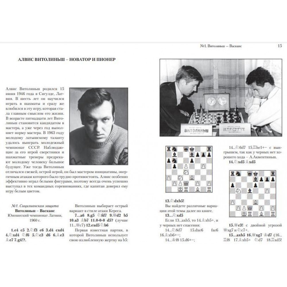 Алвіс Вітоліньш (1946-1997) – семиразовий чемпіон Латвії, шахіст гостро-атакуючого стилю, один із останніх дебютних новаторів докомп'ютерної епохи. У бліці – гравець світового класу та постійний спаринг-партнер чемпіона світу Михайла Таля. Вітоліньш часто застосовував гамбіти та його новинки у сициліанському захисті, іспанській партії, захисті Німцовича та захисті Боголюбова застосовувалися на найвищому рівні, включаючи турніри претендентів та матчі за звання чемпіона світу. Міжнародним майстром Вітоліньш став у 1980 р. Першим виданням книга вийшла в Латвії у 2008 р. латиською мовою, аналізи були перевірені за допомогою комп'ютерів, доступних на той момент. У 2021 р. міжнародний майстер Григорій Богданович за допомогою комп'ютерних програм останнього покоління протестував усю аналітичну частину книги та вніс необхідні виправлення. Фотографії надані авторами та Шаховою Федерацією Латвії. Фото на обкладинці М. Рабкіна, 1980.