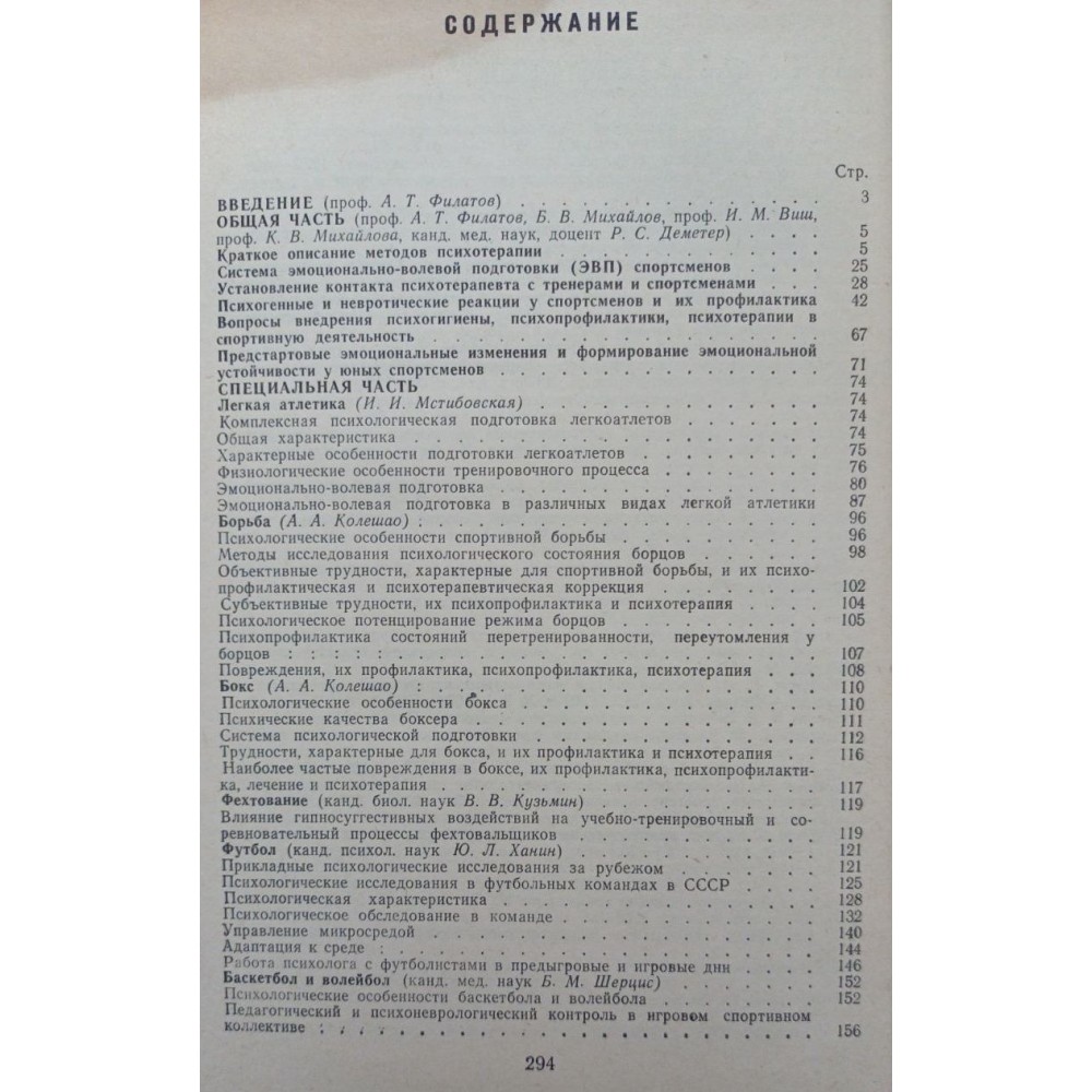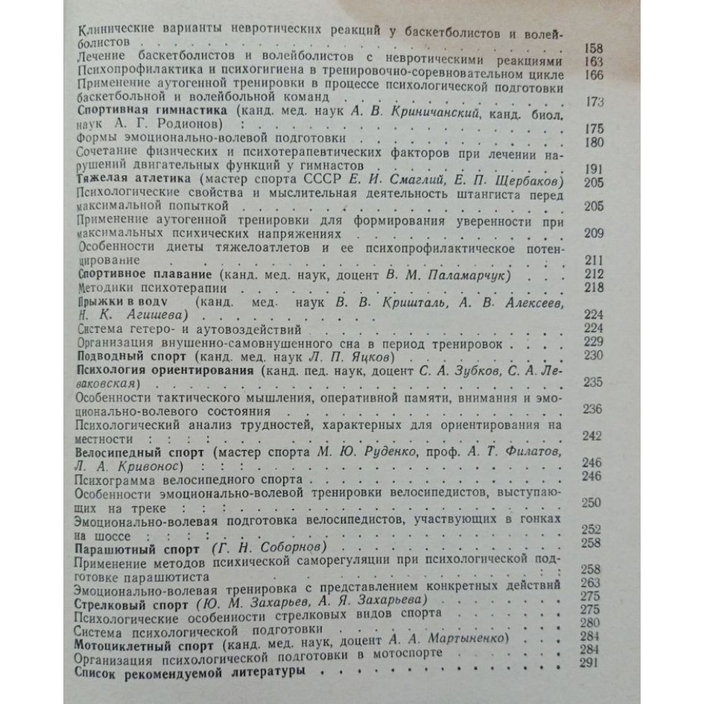 Видана в 1982 р. за редакцією професора А. Т. Філатова книга «Емоційно-вольова підготовка спортсменів» показує, що аутогенне тренування за радянських часів активно використовувалося в психофізіологічній підготовці легкоатлетів (І. І. Мстібовська), борців та боксерів( А. А. Колешао), футболістів (Ю. Л. Ханін), баскетболістів та волейболістів (Б. М. Шерцис), гімнастів (А. В. Криничанський, А. Г. Родіонов), важкоатлетів (Є. П. Смаглій, Є. П. Щербаков), плавців (В. М. Па-ламарчук), спортсменів, які займаються підводним спортом (Л. П. Яцков), фехтуванням (В. В. Кузьмін), спортивним орієнтуванням (С. А. Зубков, С .А. Леваковська), велосипедним, парашутним, стрілецьким та мотоциклетним спортом (М. Ю. Руденко, А. Т. Філатов, Л. А. Кривоніс, Г. Н. Соборнов). Найбільш широке поширення у спортивній практиці набули «психорегулююча тренування» (А. В. Алексєєв, Л. Д. Гіссен; А. В. Алексєєв, В. Є. Рожнов), у пізніших роботах іменована як «психом'язове тренування» [Алексєєв А В., 1978], та «емоційно-вольова підготовка» спортсменів [Філатов А. Т., 1979; Філатов А. Т. та ін., 1982].