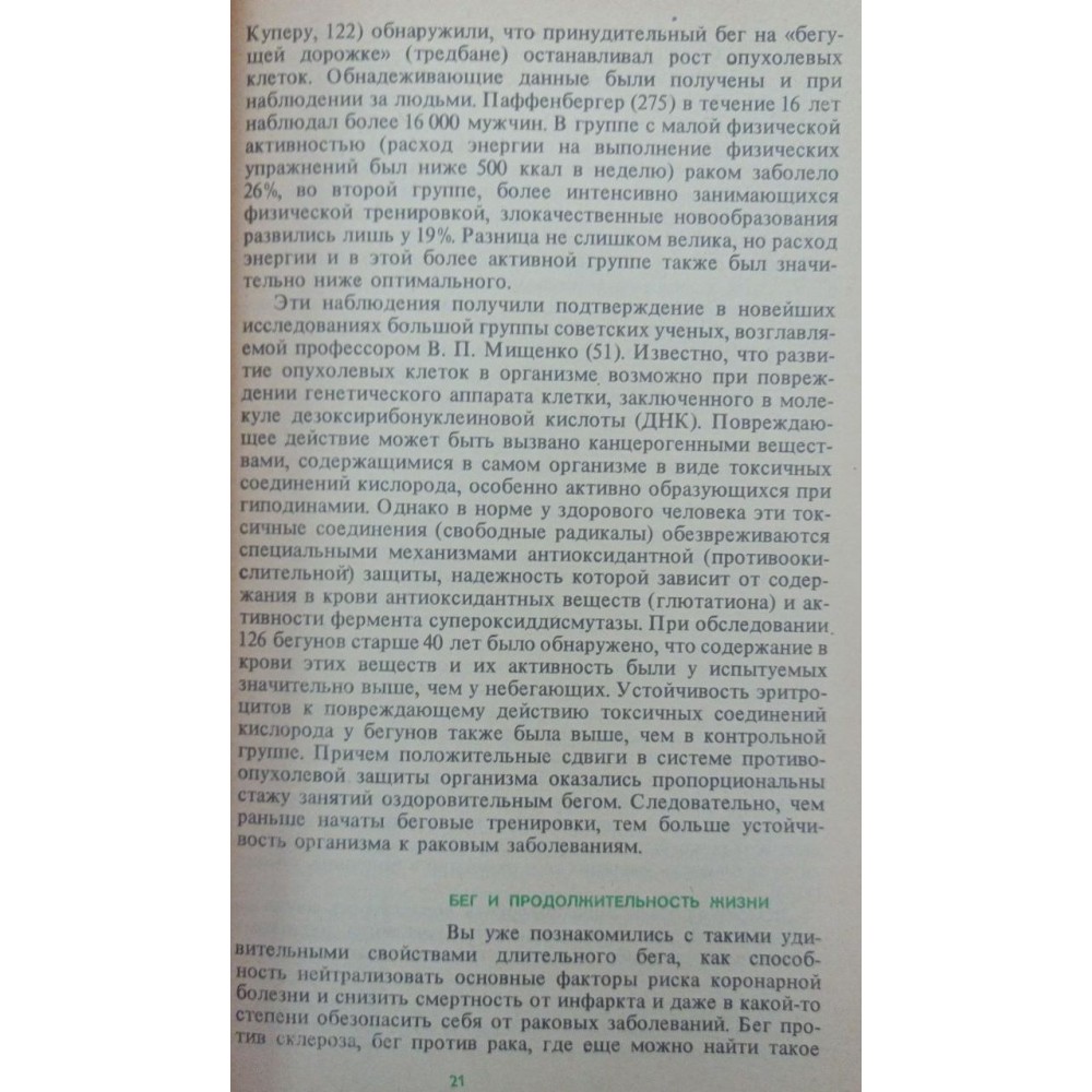 У книзі розповідається про фізіологічні основи бігу, особливості організму людей середнього та старшого віку. Наводяться результати досліджень вчених, що показують позитивний вплив занять бігом, методики використання з метою профілактики різноманітних захворювань.