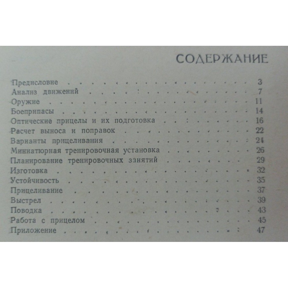 У посібнику розглядаються питання метедики поелементного тренування стрільця по кабану, що біжить, проводиться аналіз положень, що передують пострілу, наводяться приклади переобладнання старих прицілів і даються поради щодо влаштування мініатюрної установки, необхідної для занять у класі. Призначено для тренерів, які навчають стрільби по кабану, що біжить, а також для самостійної підготовки спортсменів.