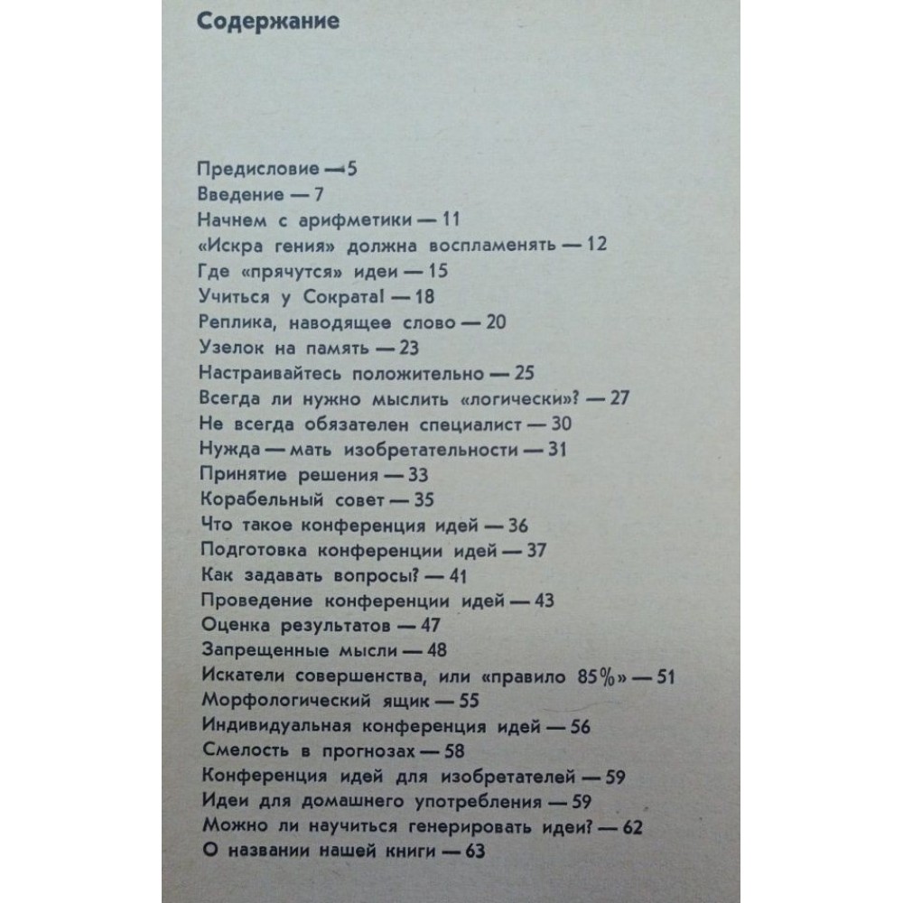 Автори книги у легкій та цікавій формі знайомлять читача з проблемами масового винахідництва, з науковою організацією колективної творчої праці. Розповідають про те, як зробити наради, спрямовані на пошуки раціональних рішень виробничих проблем, справді творчими та плідними. Книга призначена для найширших кіл винахідників та раціоналізаторів – від кваліфікованих робітників до керівників.
