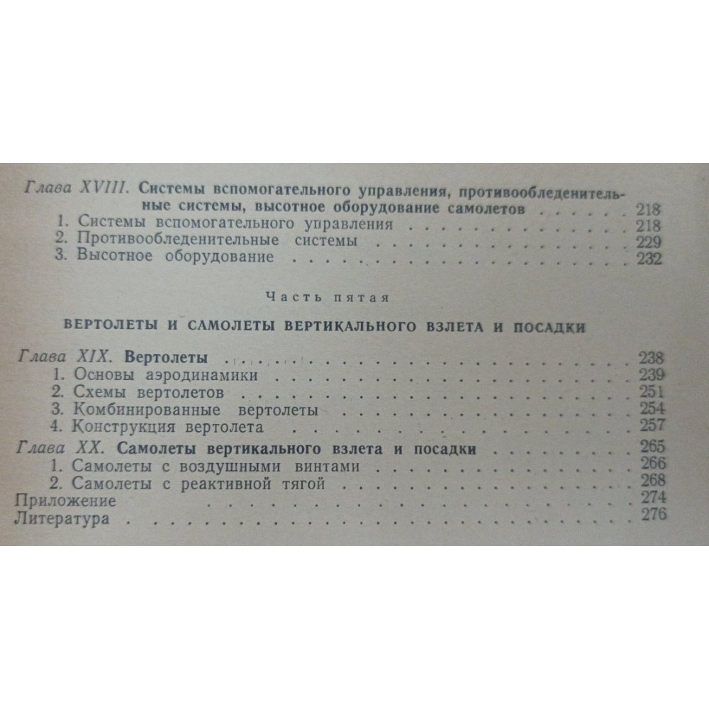 Рекомендовано як підручник для вузів цивільної авіації. Міститься відомості про повітряне середовище, основи аеродинаміки та динаміки польотів літака та вертольота. Розглянуто схеми літальних апаратів, конструкцію крила та його механізацію, оперення, фюзеляжу, шасі, систем управління, повітряних гвинтів літаків. Наведено описи висотного, протиобледенітельного гідравлічного, приладового обладнання літальних апаратів.