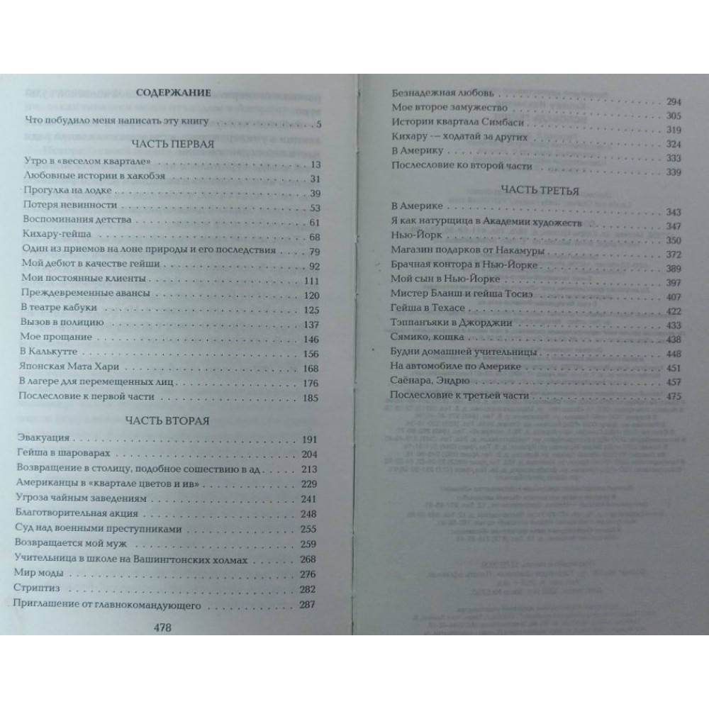 Кіхару Накамура, одна з найзнаменитіших гейш планети, справжня гейша старої школи, хранителька японських культурних традицій, у своїх мемуарах відкриває завісу таємничості, що огортає її красиву та загадкову професію. Жінка, чиє ім'я перекладається як "Квітуча Весна", прожила яскраве, насичене подіями життя. Її оспівував Жан Кокто, нею захоплювався Чарлі Чаплін, вона спілкувалася з Федором Шаляпіним, багато відомих особистостей схилялися перед її красою та витонченістю. Молоді роки вона провела як гейша у "веселому кварталі" Токіо, потім вийшла заміж за дипломата і поїхала з ним до Калькутти, де їй довелося виконувати роль японської Мати Харі. Коли Друга світова війна розлучила Кіхару з чоловіком і їй довелося турбуватися про сім'ю, вона вирішила перебратися в Америку. Країна величезних можливостей дала їй усе, що вона мріяла: любов, незалежність, повагу, дружбу зі світовими знаменитостями. Емоційний та щирий опис яскравої, непересічної жіночої долі зробило цю книгу бестселером у багатьох країнах, вона була перекладена на безліч мов та адаптована для театральних та телевізійних постановок.