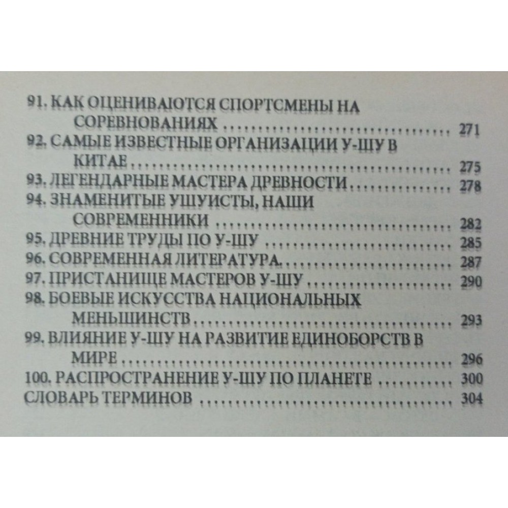 У ваших руках книга відомого майстра у - шу Чжан Юкуня 'Сто питань з у - шу'. У ній зібрано інформацію практично про всі сторони багатогранного світу у - шу. Вона познайомить вас із усіма відомими стилями, зброєю, базовою технікою, рекомендаціями щодо навчання. У ній же ви знайдете короткі історичні відомості про у - шу, про стародавніх і сучасних майстрів та багато іншого. Коротко цю книгу можна було б назвати 'Путівником у світ у - шу'. В даний час виходить велика кількість книг, присвячених питанням, пов'язаним із бойовими мистецтвами. Вони бувають різної якості, проте всі вони характеризуються однією загальною рисою: вони породжують безліч питань щодо історії у - шу, його походження, наявності шкіл, майстрів і таке інше. У цій книзі всі, хто займається, цікавиться або просто любить у - шу, знайдуть докладні відповіді на численні питання, що виникають у практиці та теорії цього чудового мистецтва.