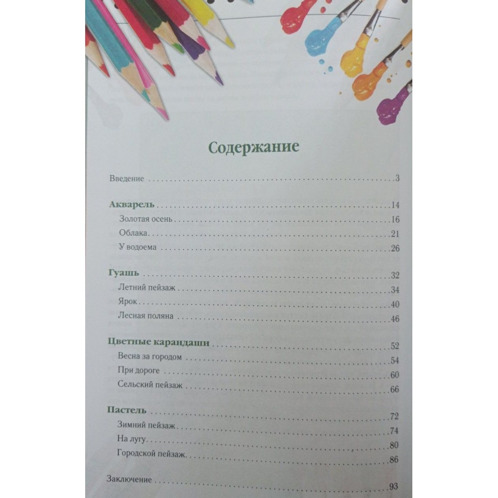 Це чудове практичне керівництво навчить вас малювати краєвиди у різних мальовничих техніках. Від нарису до закінченого твору - всі етапи створення картини докладно описані та проілюстровані. Від вас потрібно лише трохи завзятості, щоб зобразити узлісся, поле, квітучий луг, міський дворик, високе небо з хмарами, берег річки та багато іншого, досягнувши максимальної схожості з натурою. Запропоновані сюжети в ніжних пастельних та насичених яскравих тонах подарують натхнення як початківцям, так і досвідченим художникам!