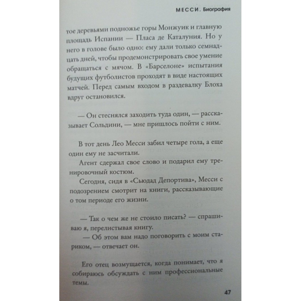 Докладна біографія аргентинця Ліонеля Мессі, якого часто називають найкращим футболістом усіх часів. Автор книги, аргентинський журналіст Леонардо Фаччо докладно розповідає про те, як талановитий хлопчик, який страждав на рідкісне захворювання - дефіцит гормону росту, - пройшов шлях до слави, ставши суперзіркою світового спорту, єдиним в історії футболу чотириразовим володарем "Золотого м'яча". Книга для всіх, хто любить спорт та красиві історії успіху.