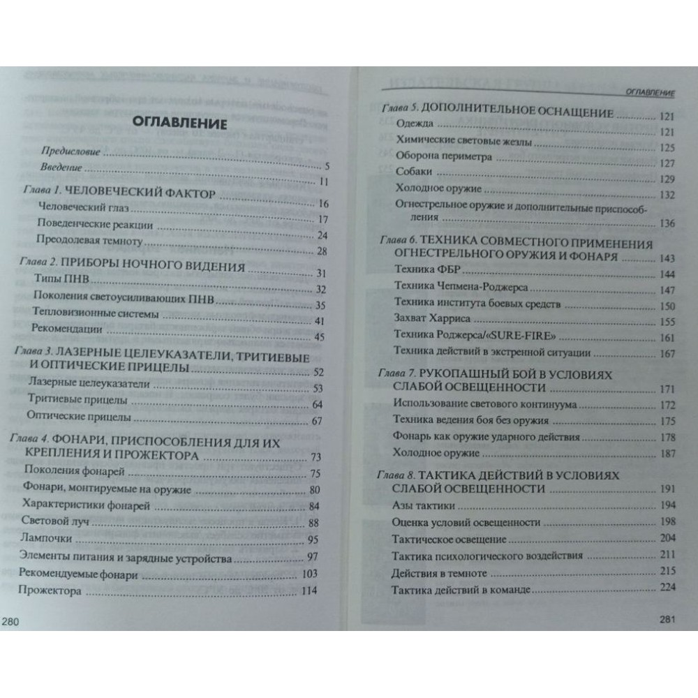 Букіністичне видання. Автор цієї книги набув популярності як інструктор тактики дій зі зброєю і без зброї в умовах недостатнього освітлення, чи це міські нетрях або лісові нетрі, покинуті будівлі або трюм корабля. Доскональне знання сучасного оснащення, техніки, прийомів та способів ведення бою в ускладнених умовах дозволяє автору давати рекомендації не лише професіоналам, а й звичайним людям, які потрапили до екстремальних ситуацій. Для широкого кола читачів.