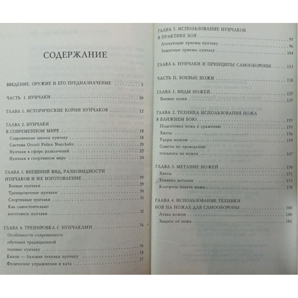 На перший погляд між нунчаками та бойовими ножами дуже мало подібності, але, без сумніву, їх поєднує одна - вони є ефективною та дуже небезпечною бойовою зброєю. Про те, як вони виглядають, про їхню історію, методи застосування та особливості докладно розповідається в цій книзі.