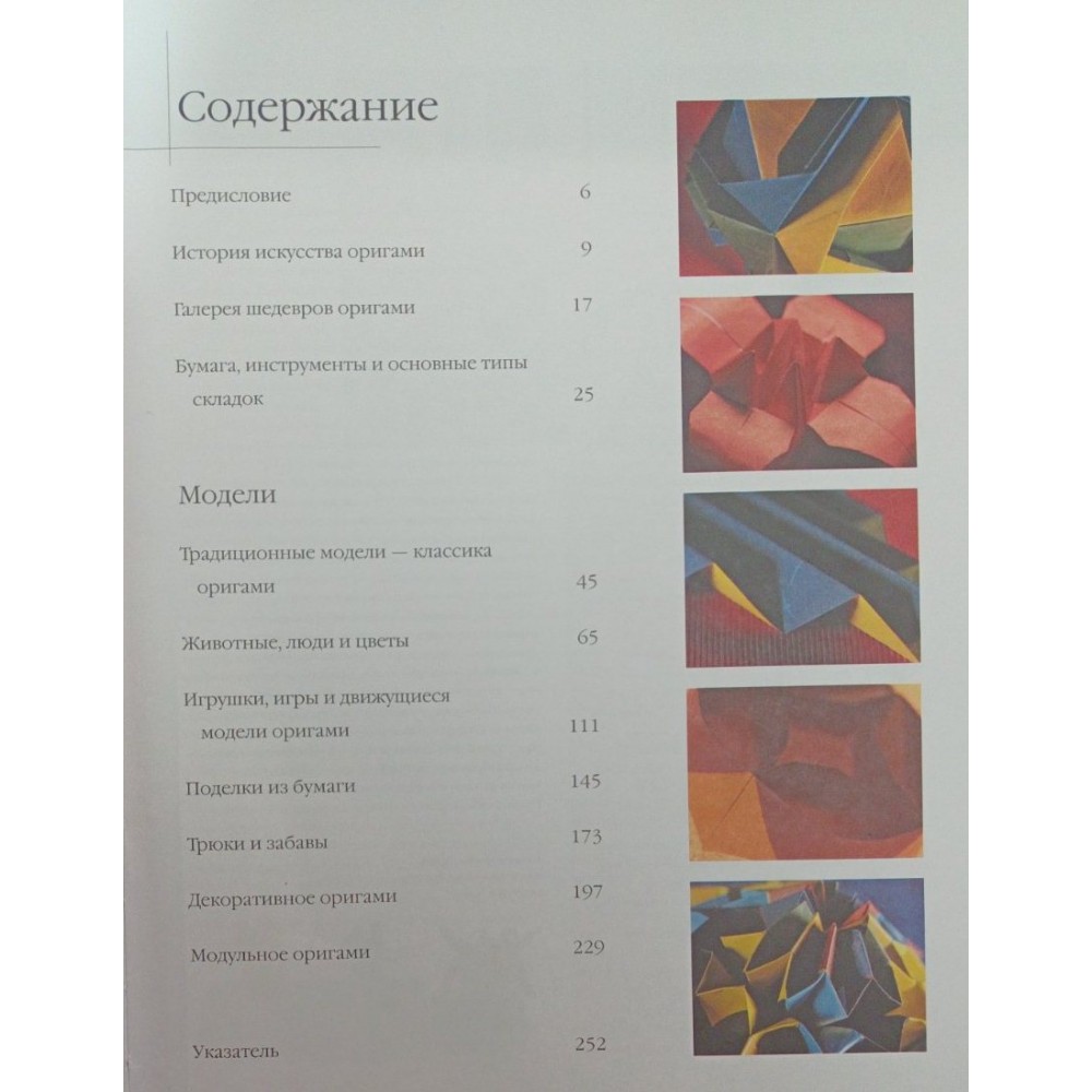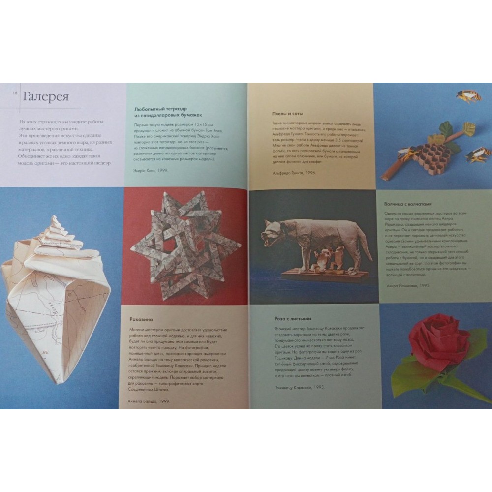 Букіністичне видання. Унікальна колекція моделей орігамі, розроблена провідними світовими майстрами: фігурки тварин, квіти, іграшки; рухомі моделі; декоративні прикраси та модульні композиції. Детальний опис прийомів та техніки їх виготовлення. Цінні практичні поради професіоналів з правильного вибору паперу для орігамі та роботи з нею. Технічні прийоми створення моделей із вологого паперу. Відкрийте для себе безмежні можливості для фантазії та досконалості!