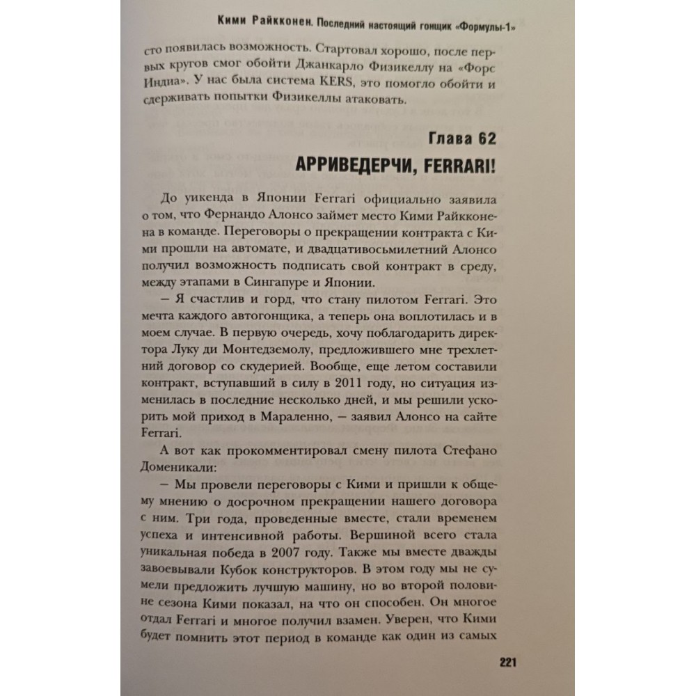 Суперзірка «Формули-1», людина легенда з репутацією найшвидшого на трасі та безшумного поза нею – Кімі Райкконен! Фінський гонщик прославився не лише як чемпіон «Формули-1», а й як холоднокровний та незворушний спортсмен. Незважаючи на всі перепони та невдачі, що зустрічалися на його шляху, він зберігав спокій і просто робив свою роботу. Багато людей, які не вірили в нього, зрештою переконалися, що він майстер своєї справи.