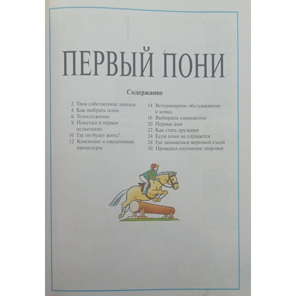Ця книга — для новачків у верховій їзді, для тих, хто вперше наважився сісти у сідло. У ній даються найрізноманітніші поради та рекомендації: як придбати свого першого в житті коня, як за ним доглядати, як підготуватися до виставок та кінно-спортивних змагань, а також як прикрасити та зачесати коня. У книзі багато чудових фотографій, таблиць та малюнків.