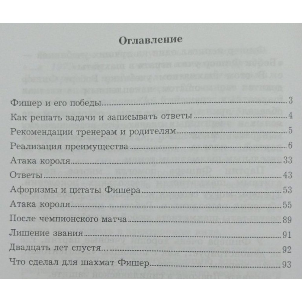 Ви тримаєте в руках задачник, складений за партіями Роберта Фішера — одного з найвидатніших шахістів усіх часів! Тут представлені всі комбінації, що зустрілися у партіях шахового короля. У першому томі позиції систематизовані за темами: зв'язка, подвійний удар, відкритий напад, відволікання та залучення, знищення захисту та інші — тому тренери та самостійно, що займаються, зможуть використовувати їх як навчальний матеріал. Другий том містить такі матеріали: атака на короля, реалізація переваги, тестові партії та інші. Тренери та ті, хто займається самостійно, зможуть використовувати їх у навчальних цілях. Ваше завдання знайти рішення в ситуаціях, з якими в ході партії стикався великий Роберт Фішер. Вирішивши всі позиції, ви суттєво піднімите силу своєї гри і досягнете нових турнірних перемог. Книга складена Всеволодом Костровим — відомим шаховим тренером та автором понад 100 книг із шахів. Займаючись за його підручниками та задачниками, багато хлопців з легкістю освоюють шахову науку та перетворюються на сильних гравців!