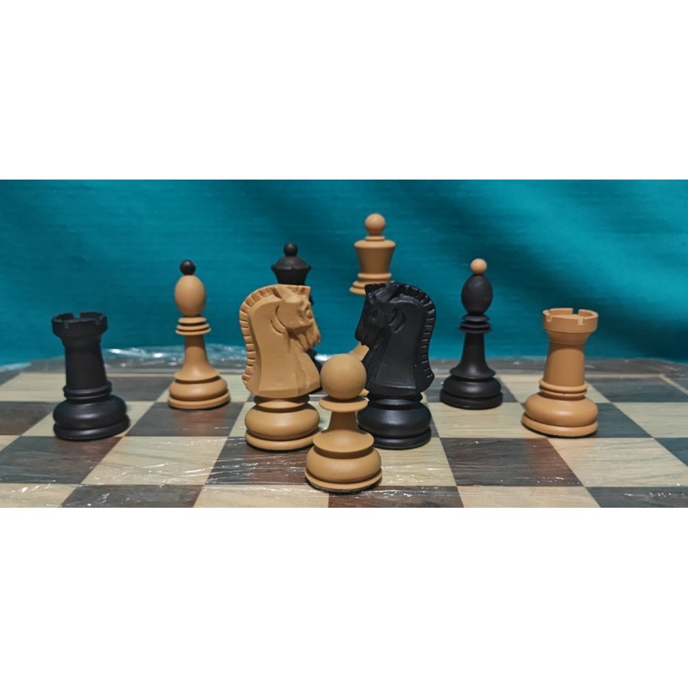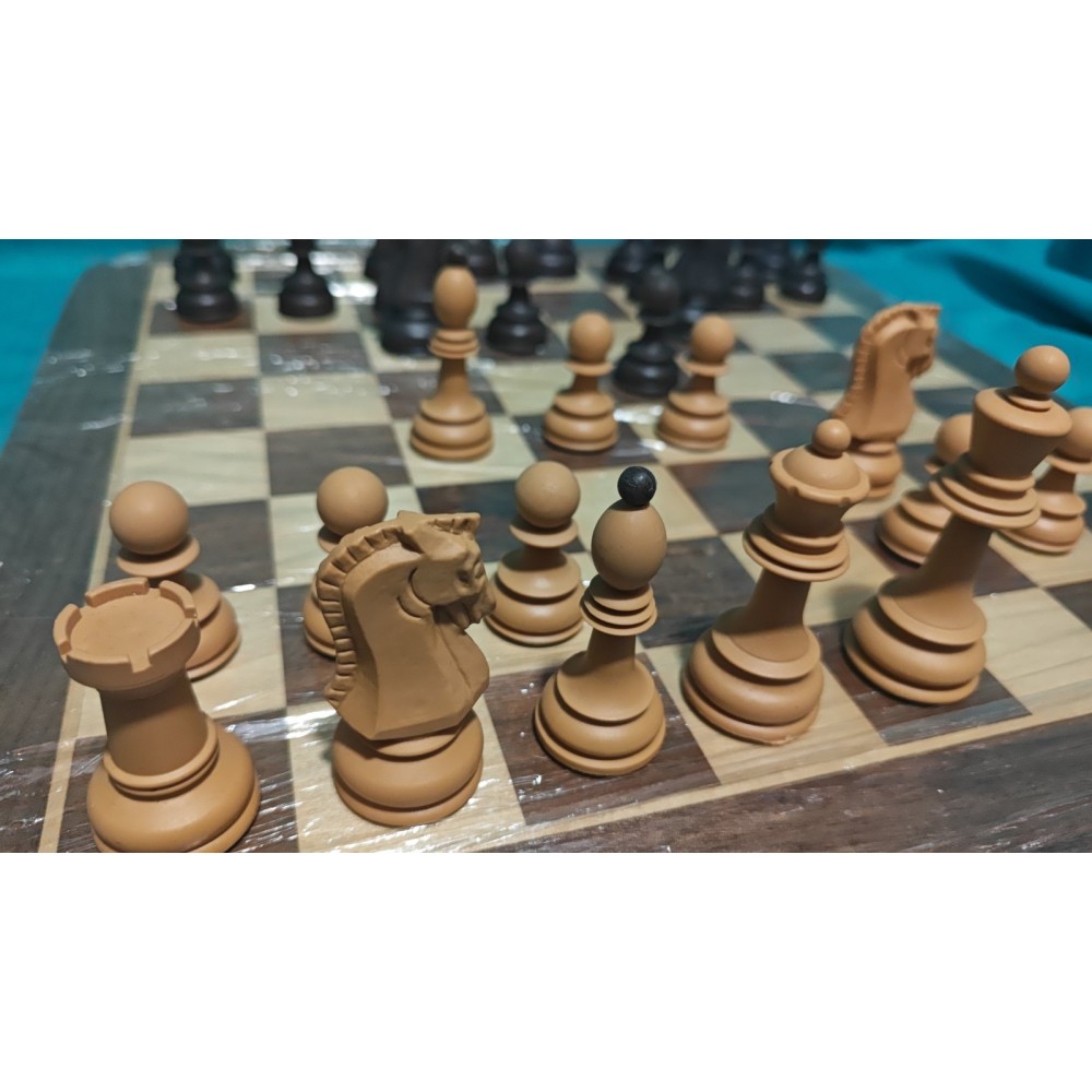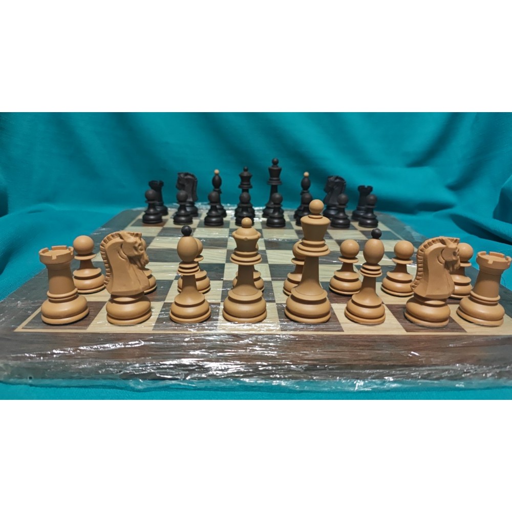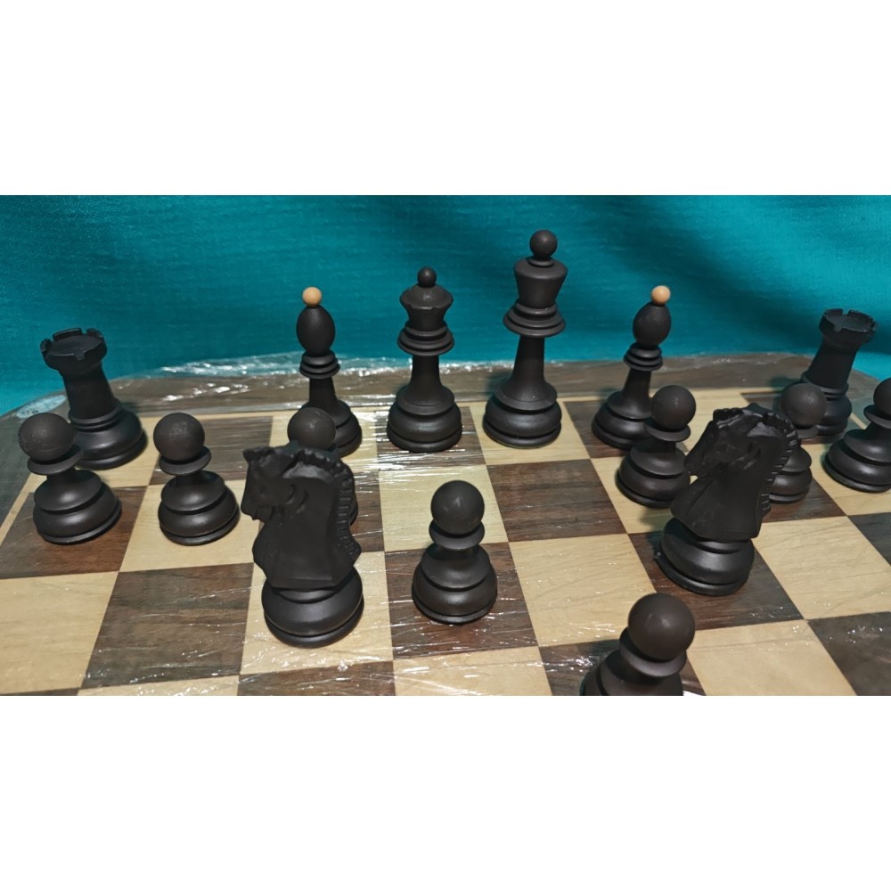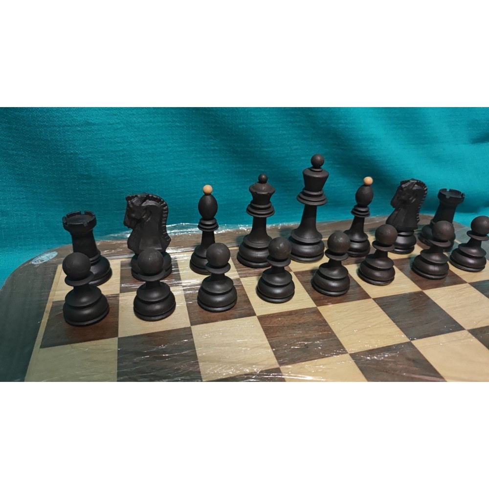 Шахові фігури із цільного пластику з металевим обтяжувачем усередині. Класичний Дубровник. Колір: бежеві та коричневі. Основи фігур покриті зеленим сукном. Вага – 600 грам. Виробництво Сербiя.