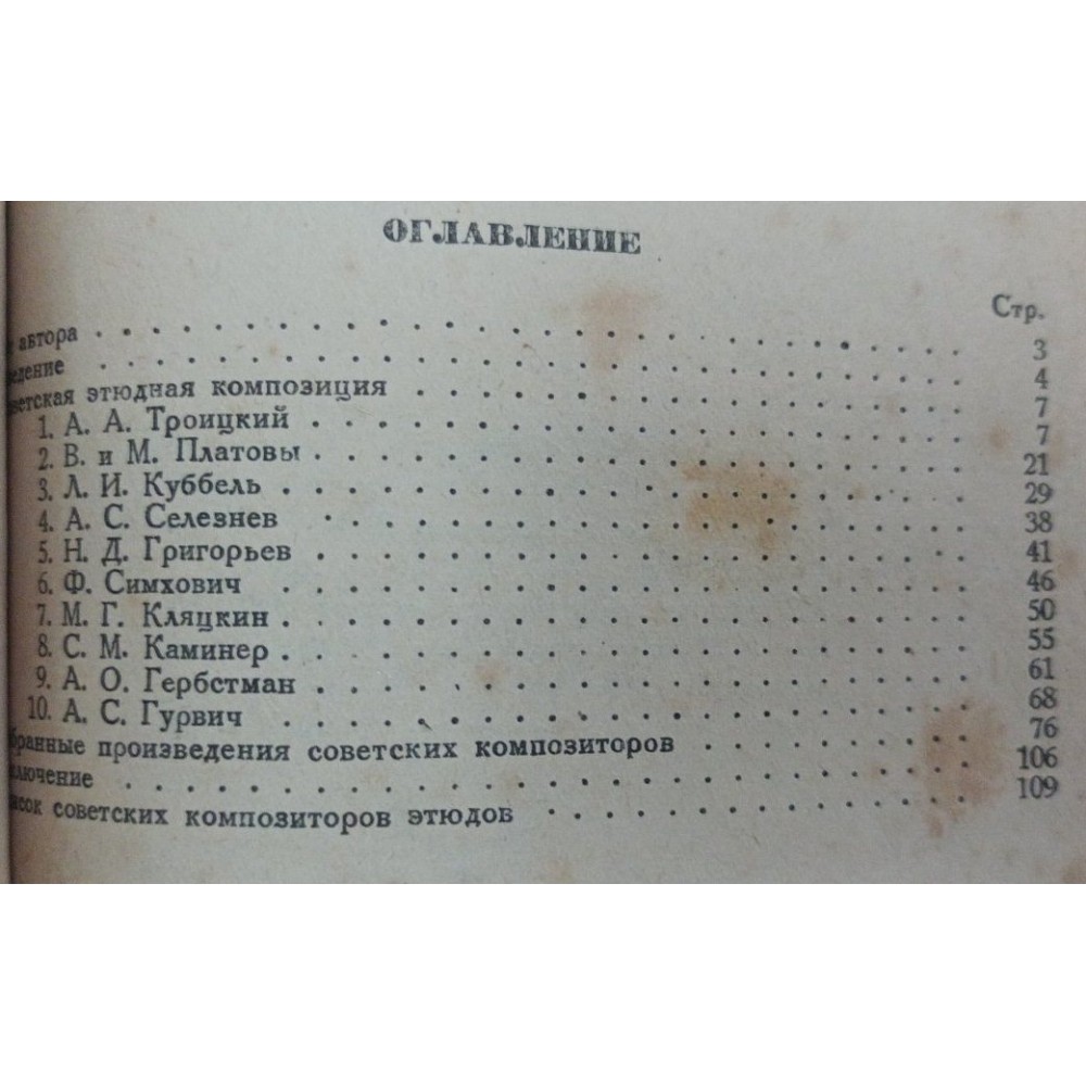 Радянські композитори, якісно та кількісно випередивши Західну Європу, досягли виняткових успіхів у галузі шахового етюду. Книга А. О. Гербстмана, ілюстрована 114 прикладами, розповідає про шляхи, тематику та напрямки, які характеризують радянський шаховий етюд від його засновника — заслуженого митця А. А. Троїцького — до наших днів.