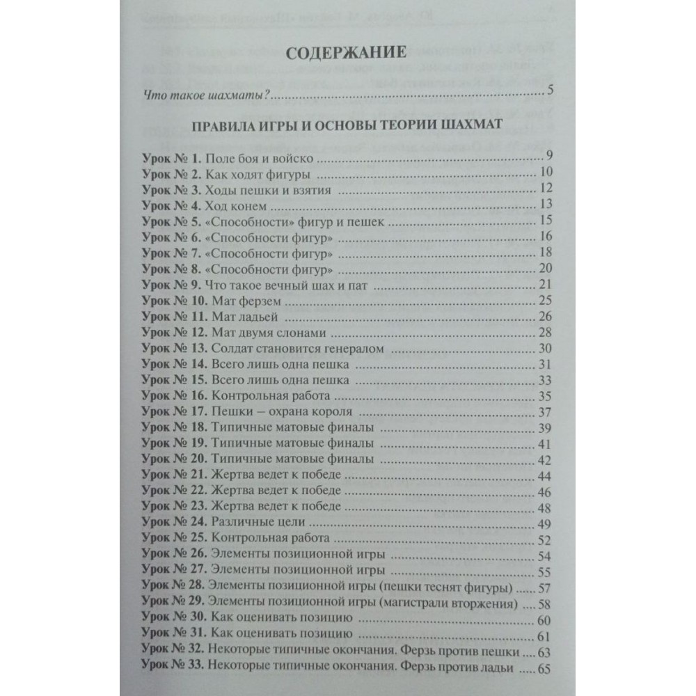 Класичний самовчитель шахів для початківців від знаменитих авторів. Його відрізняє простота та чіткість викладу матеріалу, заснованого на принципі "необхідно і достатньо" - в ньому немає нічого зайвого, але є все необхідне. Викладаються основні правила та закони шахів, наводяться найкращі партії та комбінації. Після прочитання книги початківець готовий до самостійного плавання.