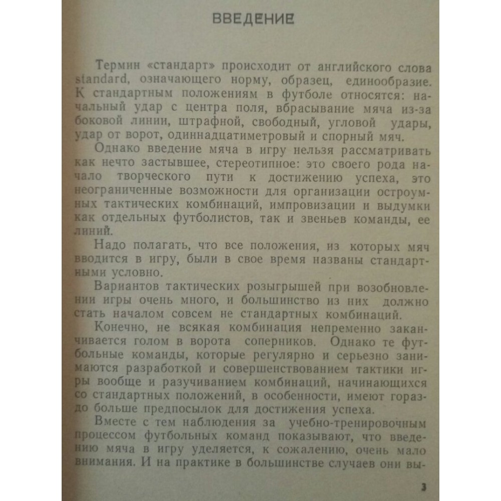 Член навчально-методичної ради Всеросійської федерації футболу, суддя республіканської категорії В. І. Сімаков, використовуючи багаторічні спостереження за іграми команд майстрів та міжнародними зустрічами, наводить цілу низку тактичних комбінацій, що починаються зі стандартних положень. Автор вибрав найбільш характерні комбінації і спробував викласти їх у послідовності, зручній та необхідній у навчально-тренувальній роботі. Книга розрахована на спеціалістів футболу.