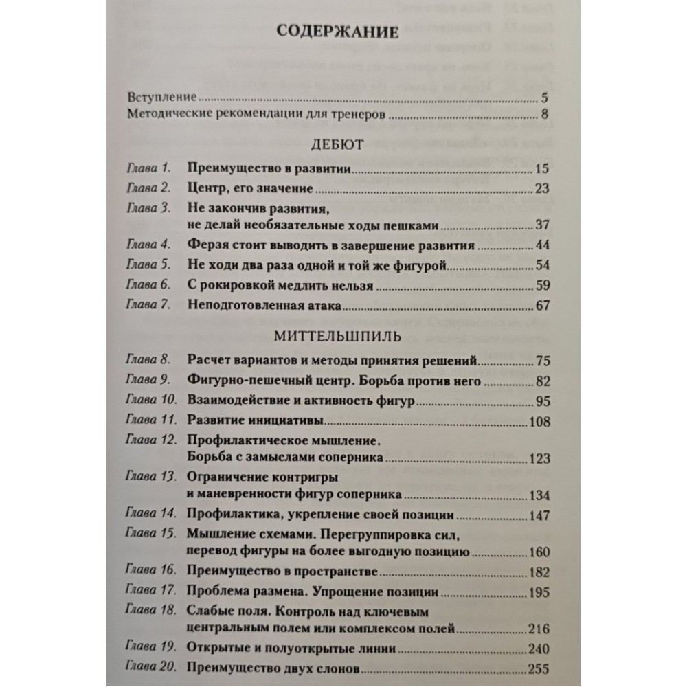 У своїй новій книзі відомі гросмейстери, теоретики та тренери зробили спробу "осягнути неосяжне": виділити і розкрити всі найважливіші питання стратегії шахів, про які повинен мати уявлення кожен грамотний шахіст. Ретельно відібрані та глибоко проаналізовані партії та фрагменти є симбіозом класичних, добре відомих зразків та прикладів із сучасної практики. Усі наведені партії та фрагменти поділені на три рівні складності; кожний розділ супроводжує список додаткових матеріалів для самостійного вивчення. Перший том складається з двох частин: "Дебют" та "Міттельшпіль", у другому томі розбираються дві інші теми: "Пішки - душа шахів" та "Динаміка". Книга адресована, в першу чергу, першорозрядникам і кандидатам у майстри, хоч і досвідченіші шахісти напевно знайдуть для себе чимало корисних порад та рекомендацій. Ця робота може бути використана і як самовчитель, і як підручник для спеціалізованих шахових шкіл. 2-ге видання.