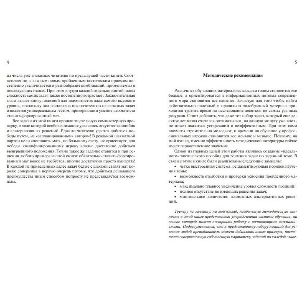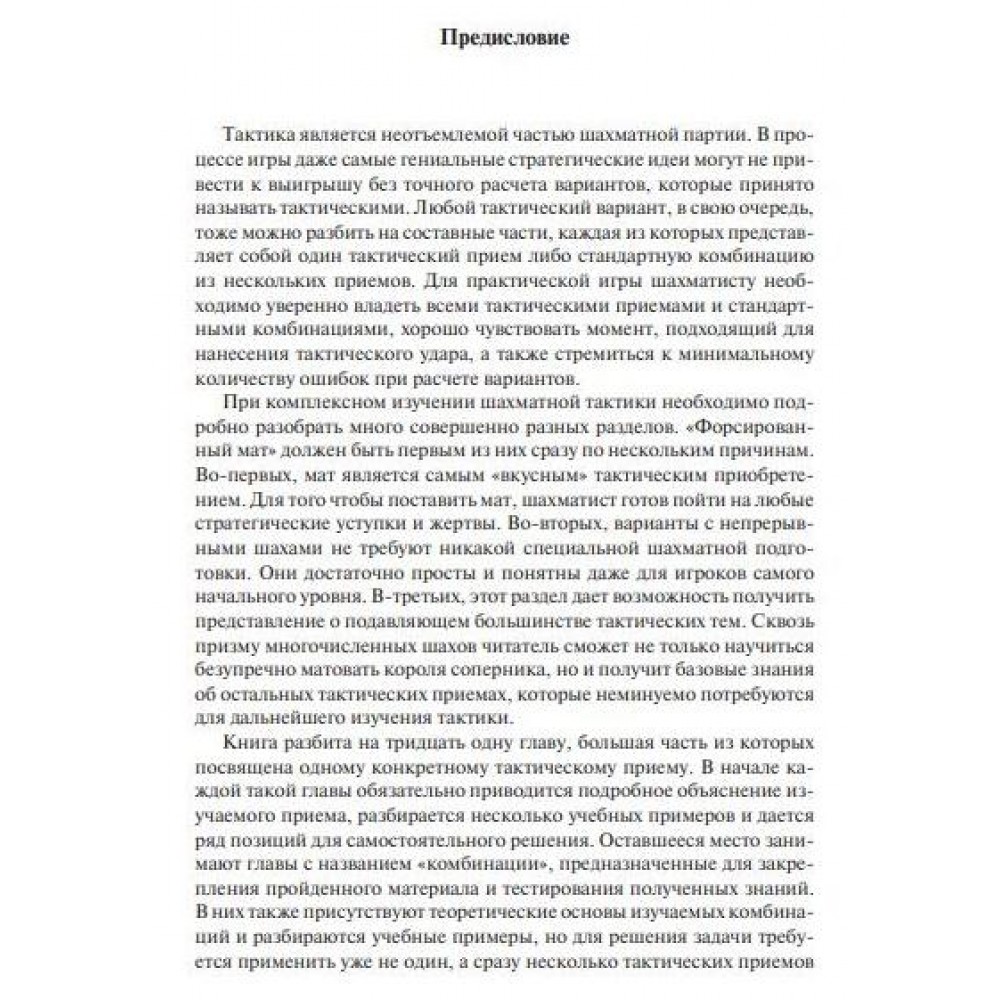 Нову книгу відомого тренера присвячено такому важливому розділу шахової тактики, як форсований мат. Варіанти з безперервними шахами не вимагають спеціальної підготовки, вони досить прості та зрозумілі навіть для гравців початкового рівня. Крізь призму численних шахів читач зможе як навчитися бездоганно матувати короля суперника, а й отримає базові знання інші прийоми, які неминуче знадобляться подальшого вивчення тактики. Книга містить 1500 насичених тактичними ресурсами позицій, їх 1380 – для самостійного рішення. Підручник розбитий на 31 розділ, більшість з яких присвячена одному конкретному тактичному прийому з докладним поясненням. Розділи з назвою «Комбінації» призначені для закріплення пройденого матеріалу та тестування отриманих знань. Заключний розділ (120 позицій) робить книгу корисною для шахістів навіть найвищого рівня, оскільки вона складена виключно зі складних завдань і є універсальним тестом, що перевіряє вміння ставити форсований мат. Для широкого кола любителів шахів.
