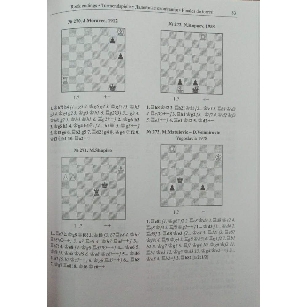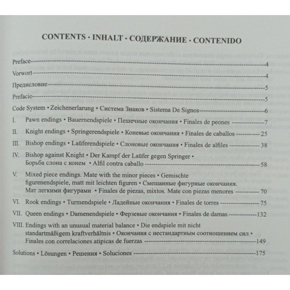 Перед вами збірка 600 найважливіших стандартних (точних) позицій щодо ендшпілю. Підручник складається з восьми частин: пішкові закінчення, коневі, слонові, слон проти коня, змішані фігурні закінчення, мат легкими фігурами, лайові, ферзеві та закінчення з нестандартним співвідношенням сил. Завершують кожен розділ завдання для самостійного вирішення, відповіді до яких ви знайдете наприкінці книги.
