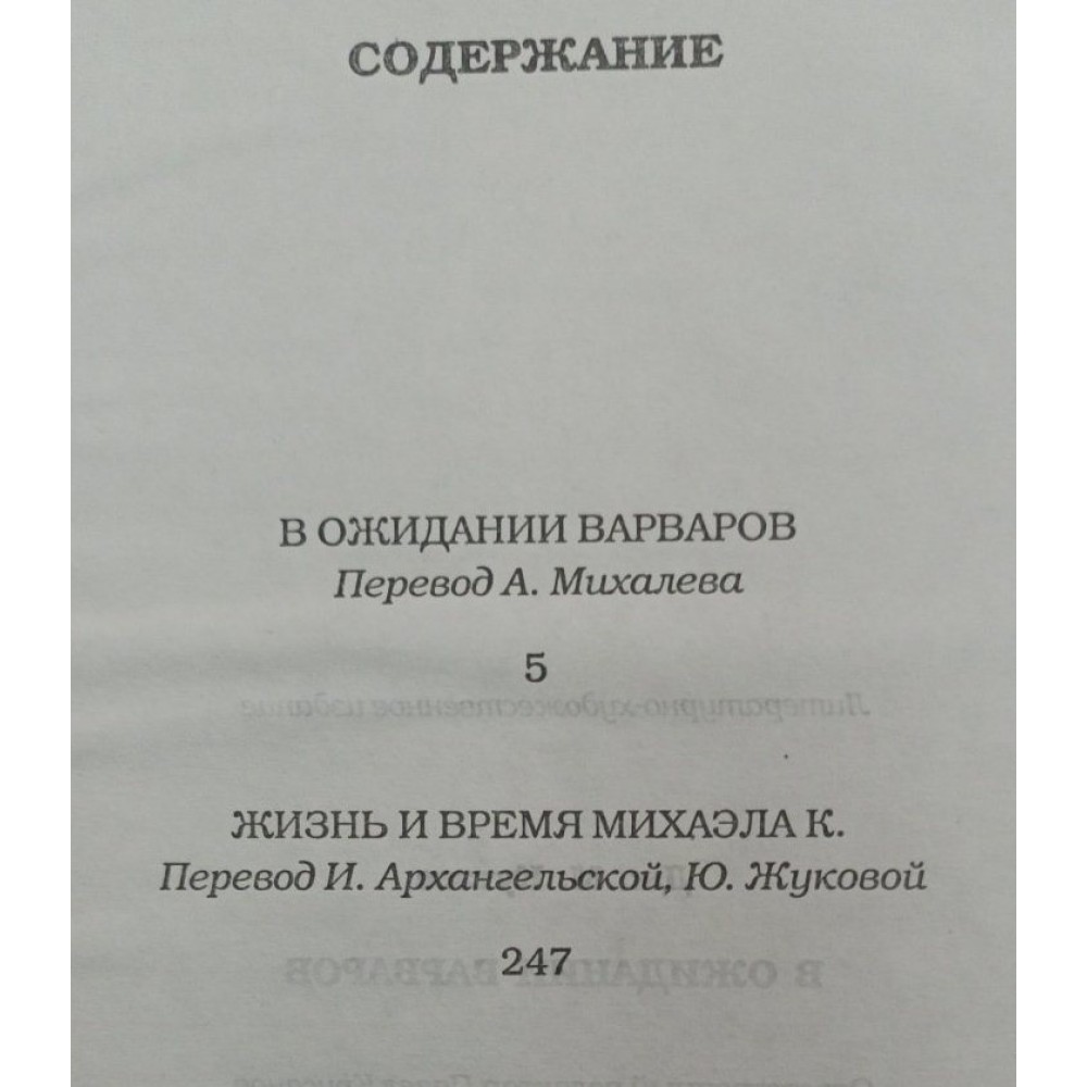 Невелике містечко на околиці безіменної Імперії схвильоване звісткою про швидкий напад племен варварів із прикордонних пустель. Полковник, що прибув із серця Імперії, готовий винищити всякого, аби вибити з людини потрібні свідчення. Міський суддя, який не бажає піддаватися паніці і в результаті з обвинувача перетворився на обвинуваченого. Полонена дівчина, яка для судді стає об'єктом чуттєво-релігійного поклоніння. Роман-притча, роман-метафора, що нагадує шалені фантазії Кафки, Беккета та Буццаті.