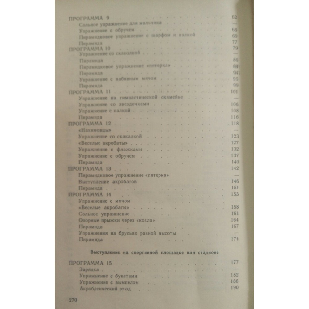 Ця книга — на допомогу юним гімнастам. У ній дається практичний матеріал для фізкультурних виступів на шкільному ранку, вечорі, на зборі піонерського загону, для виступу в піонерському таборі та біля піонерського багаття. Книга призначена для активу школярів — фізкультурників, піонерів і вчителів з фізичної культури. Матеріал пропонується у вигляді вісімнадцяти програм. Перші чотирнадцять програм для виступу на сцені, в залі або великій кімнаті. Інші чотири програми — для виступу на майданчику чи стадіоні. Програми, вправи та піраміди можуть бути використані і як самостійні номери для виступів на сцені та на майданчику.